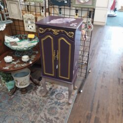 “Discover the captivating allure of this one-of-a-kind vintage, re-purposed jewelry armoire! Transformed with a vibrant royal purple finish and exquisite hand-painted details, this piece boasts ornate […]
