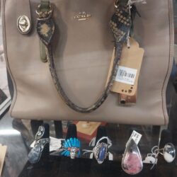 The image features a Coach Crosby Carryall handbag, identifiable by its structured shape, turnlock detail (seen on the zipper pull), and the distinctive snakeskin-embossed handles. This particular […]